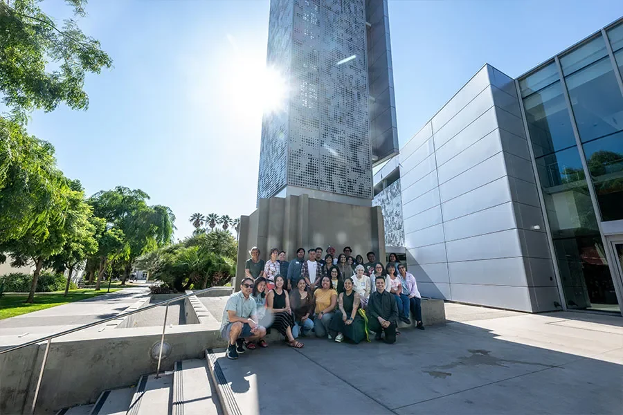 The proposed mural will span a four-paneled pillar outside the Diaz Compean Student Union, a short walking distance of the iconic Arch of Dignity, Equality, and Justice, as soon as spring 2026. That iconic tiled archway, commissioned in 2008, depicts the contributions of the Mexican American labor leaders and civil rights leaders involved in the formation of the United Farm Workers (UFW). Created by legendary Chicana artist, scholar and activist Judy Baca, it depicts renowned UFW leaders César Chávez and Dolores Huerta, as well as Mahatma Gandhi, whose principles of nonviolent resistance laid the foundation for generations of freedom fighters. A powerful and lasting symbol of the fight for civil rights, the arch invites viewers to learn.