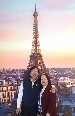 The Mercados are pictured in front of the Eiffel Tower in Paris, France, in 2024. (Photo courtesy of Gus Mercado)