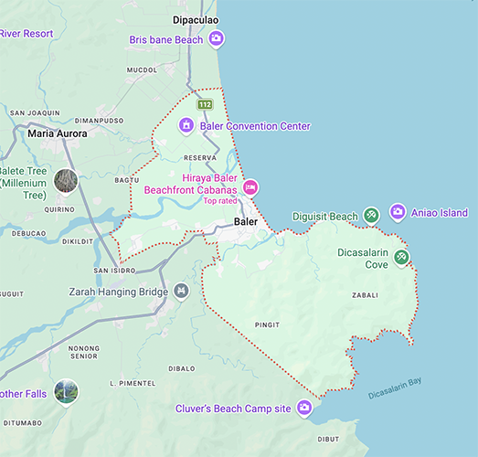 Map of Baler, Quezon (Source Goocle Maps)