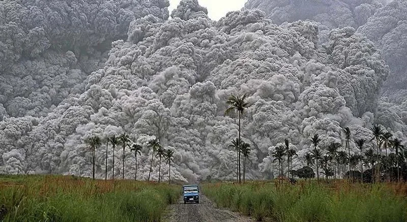 The blue truck fleeing the hot ash from Mount Pinatubo (Photo by Alberto Garcia)